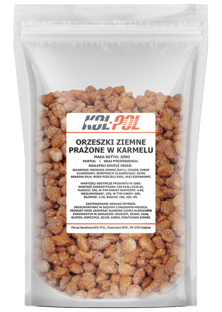 Orzeszki ziemne w karmelu to niezrównana uczta dla podniebienia. Ich intensywny smak karmelu, połączony z chrupkością orzeszków, sprawia, że każdy kęs to prawdziwa rozkosz dla zmysłów. Idealne na imprezy i spotkania lub jako słodki przerywnik w ciągu dnia. Powstają ze starannie wyselekcjonowanych orzeszków ziemnych, polanych gęstym karmelem. Pozwól sobie na chwilę słodyczy!